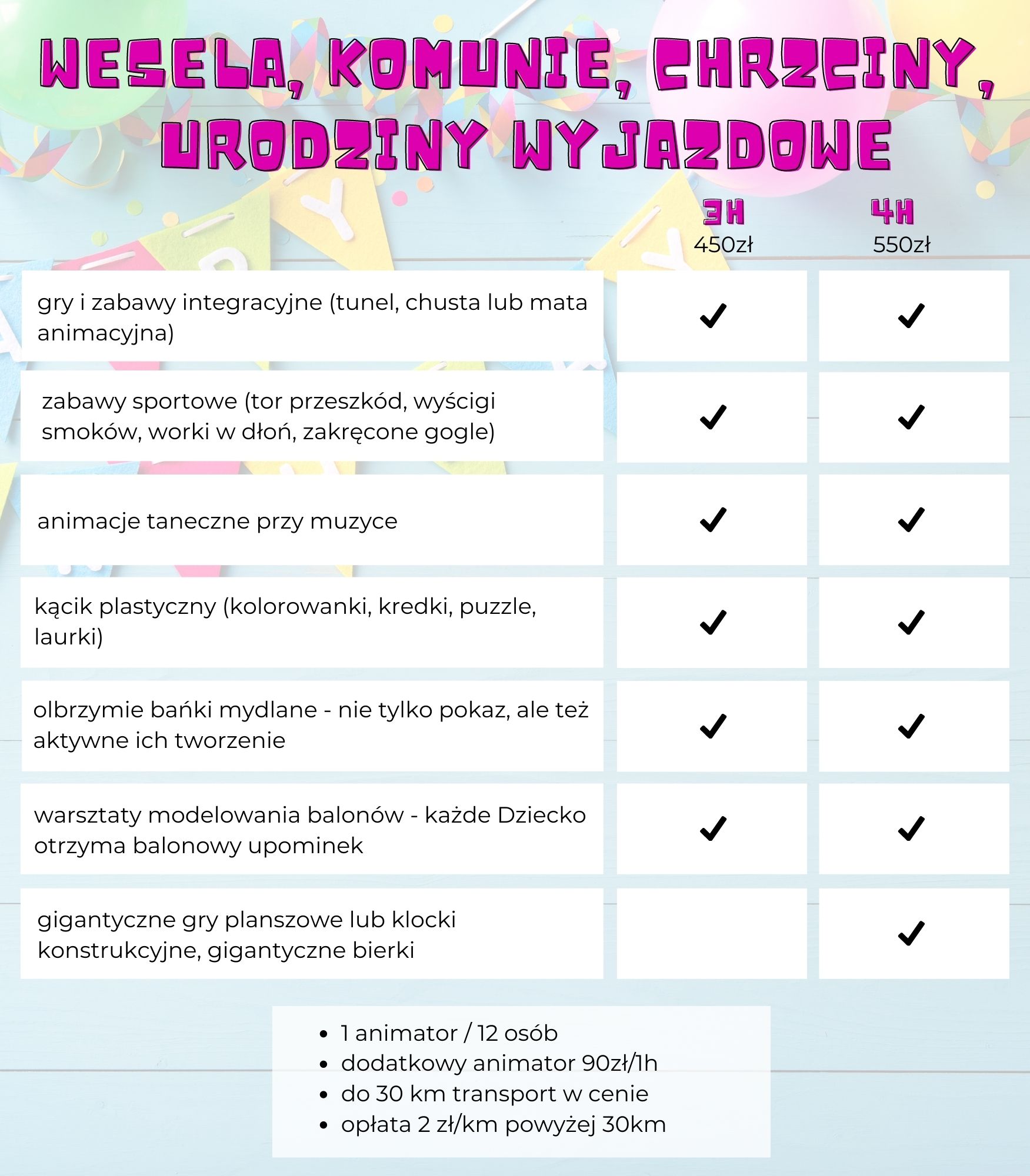 urozmaicimy Twoje przyjęcie o ciekawe gadżety - tunel, gigantyczne bańki, słomki konstrukcyjne, limbo czy gry planszowe XXL